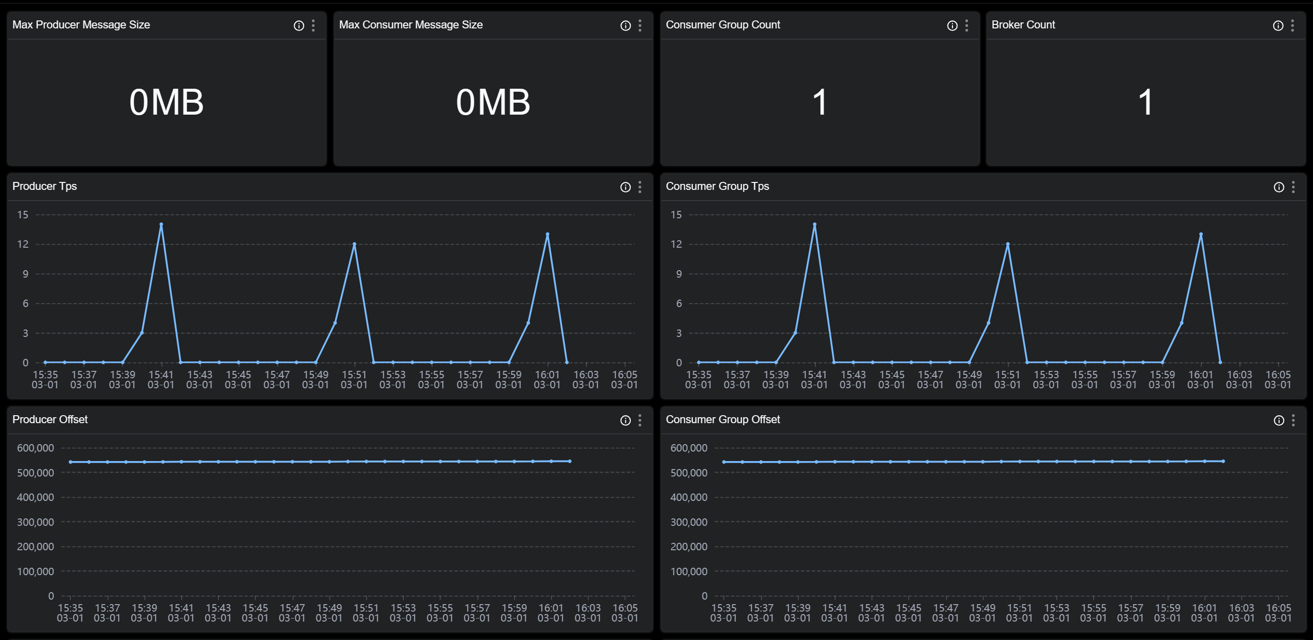 注意:topic 维度是整个 topic 来聚合,并不是在一个 broker 上的 topic 聚合,在 dashboard 上你也可以看到 broker 跟 topic 是平级的。